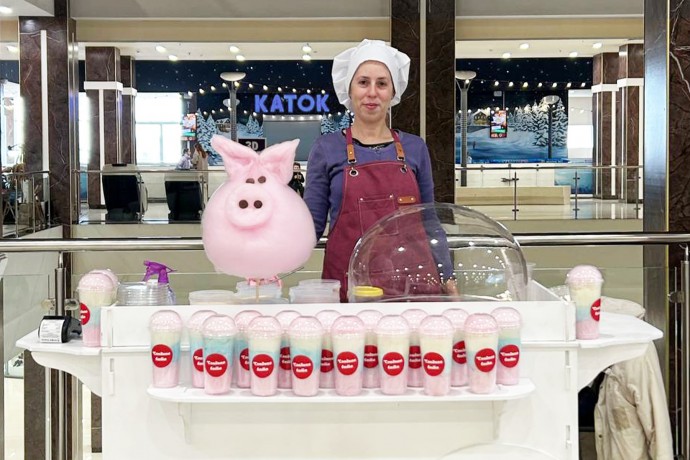 В ТРЦ "РИО" каждый день мы изготавливаем разноцветную сладкую вату, а также делаем из нее миловидные фигурки животных (поросят, слонов и даже единорогов). Приходите к нам за сладким лакомством и порадуйте себя и близких, ждем Вас на 3 этаже, зона фудкорта.